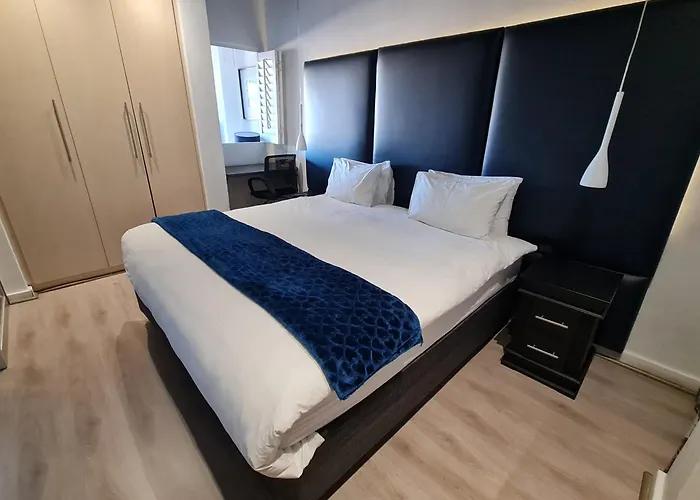Offering a private pool, the 1-room Cozy Unit 26, Genesis On Fairmount Apartment Johannesburg is situated within a 7-km distance of the 55 - hectare Johannesburg Zoo. Approximately a 10-minute drive from the 52 m² apartment you will find the modest - sized Rhodes Park.